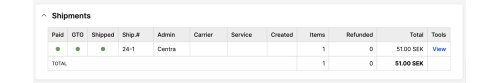 Sometimes Centra is also setup so it will send a shipment directly as the order is placed. This shipment will have a <id>-node that should be used so we can change the same shipment that has already been created. However, if the solution demands that it should be created by the ERP, this is an easy setting to turn off. Now we need to call orders_Update with a shipment to this order. This is how it should look like: