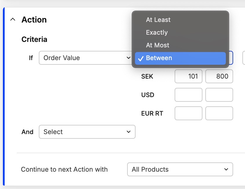 - Up until now we have had the following conditions: At least, At most, Exactly and now we are adding the range possibility with Between.