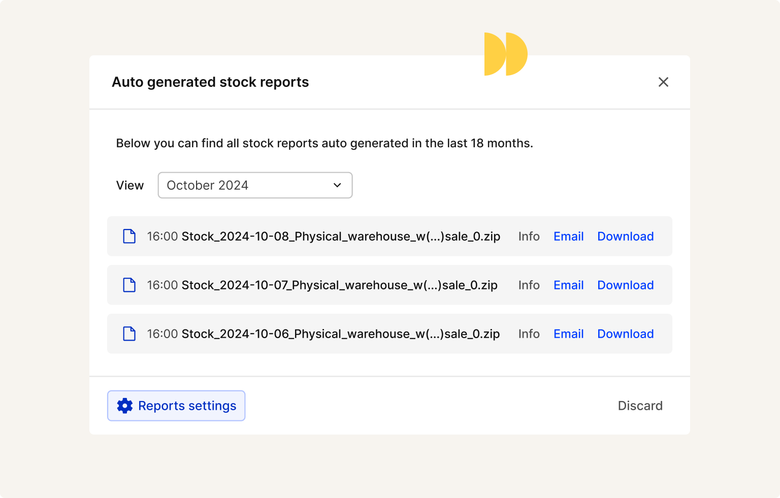 - We have now made avaialable the inventory report:by Warehouse, in xlsx format.