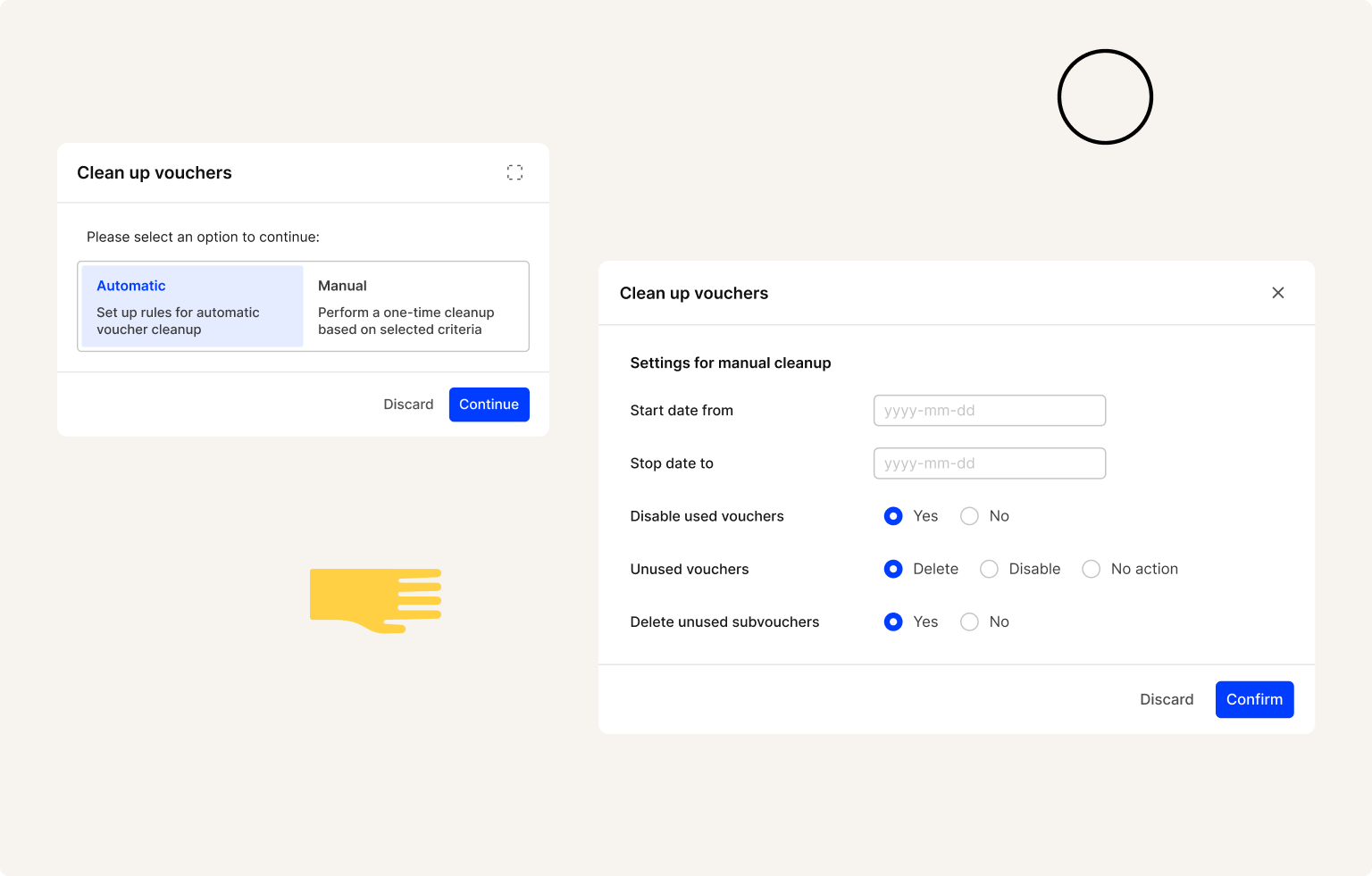 - Use the automatic option to clean up vouchers based on a set of rules or use the manual option to perform a one-time clean up.